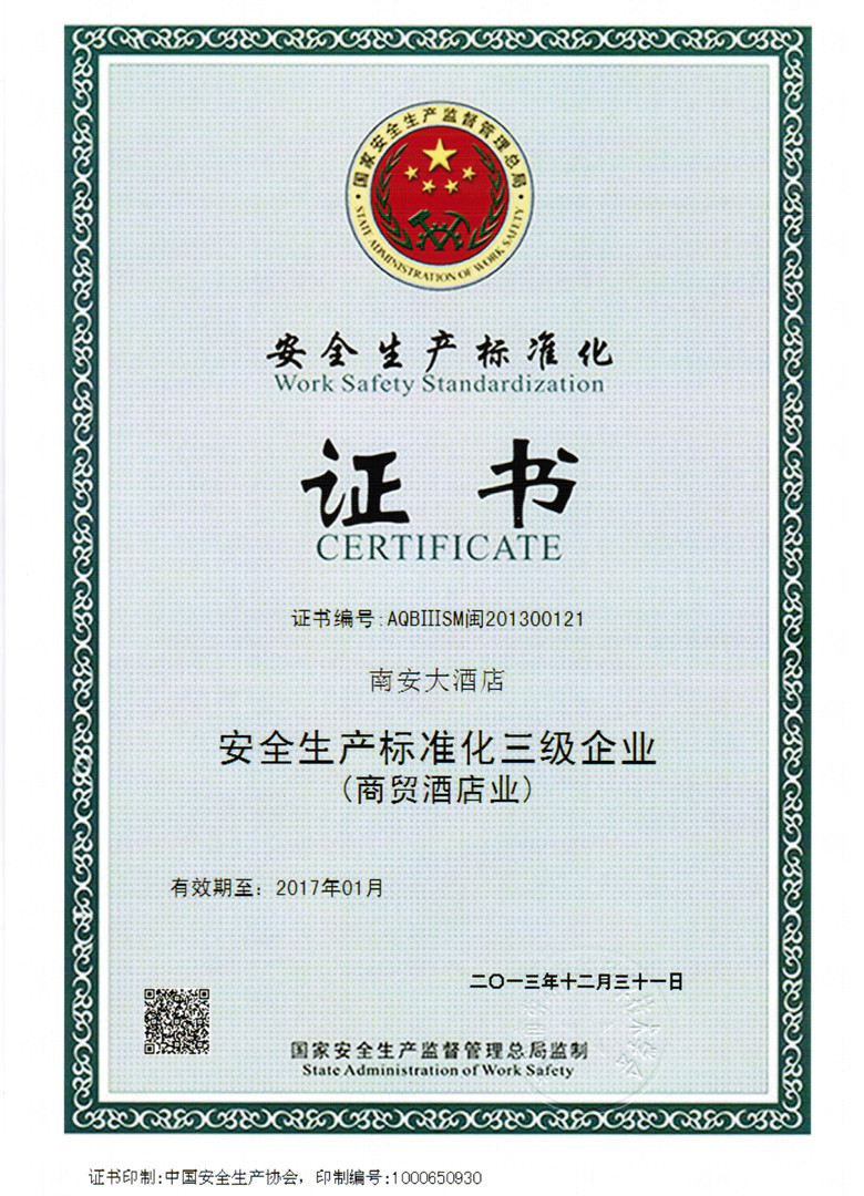 南安大酒店順利通過安全生產標準化三級企業(國家標準)評審作者: 來源:南安大酒店總經理辦公室 時間:2014-1-16 10:04:45 安全無小事,安全生產是關乎個人、集體的大事。2013年12月28日,福州市勞動保護科學技術學會評審組根據《企業安全生產標準化基本規范》、《冶金等工貿企業安全生產標準考評辦法》、《酒店業企業安全生產標準化評分標準》及《福建省政府安委會辦公室關于進一步加強全省規模或限額以上工貿行業企業安全生產標準化工作的通知》等有關要求,對我店開展關于企業安全生產標準化工作的現場評審。