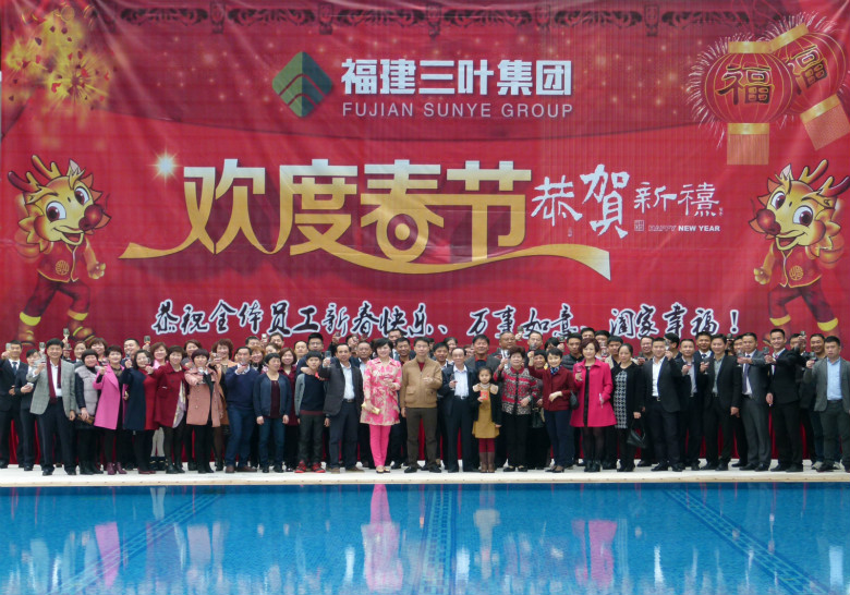 三葉集團(tuán)舉行2015年新春團(tuán)拜會(huì)作者:黃家強(qiáng) 來(lái)源: 時(shí)間:2015-2-19 17:13:15 2015年2月19日(正月初一)上午,三葉集團(tuán)2015年新春團(tuán)拜會(huì)在三葉之家游泳館舉行。來(lái)自集團(tuán)各部門(mén)、各子公司及合作公司的員工及其家屬歡聚一堂,喜迎新年、暢敘友情、共話未來(lái)。 團(tuán)拜會(huì)上,三葉集團(tuán)董事局主席葉維新先生首先向全體員工獻(xiàn)上了新年致辭,感謝全體員工在過(guò)去一年里的辛勤努力和各公司的積極配合,向全體員工致以誠(chéng)摯的感謝及新春的祝福。隨后,集團(tuán)領(lǐng)導(dǎo)及各公司高層親切地與在場(chǎng)的各位員工進(jìn)行握手祝賀及合影留念。