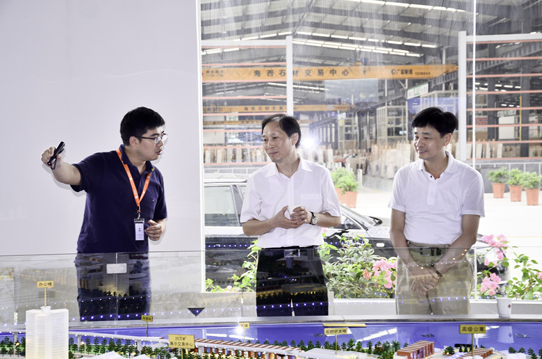 考察團一行在海西招商服務中心認真聽取了海西石材城副總經理任建新對項目的詳細介紹。隨后,考察團深入海西園區(qū)的各個市場進行實地考察。