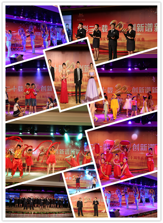 慶典節(jié)目豐富多彩,說唱快板《華酒情》詮釋了華酒人的心聲,把華酒的發(fā)展足跡和成功轉(zhuǎn)型、創(chuàng)利創(chuàng)收演繹得淋漓盡致;中旅員工帶來的《瑜悅伽人》表演把三葉人緊緊的聯(lián)系在一起;由職工子女表演的少兒T臺秀《未來之星》充分體現(xiàn)了三葉大家庭的溫馨氛圍、也標(biāo)志著企業(yè)的活力和不斷壯大的希望;詩朗誦《感恩同行》表達(dá)了“感恩?發(fā)展”的企業(yè)文化,展示了華酒人朝著夢想和目標(biāo)揚帆再啟航、破浪再前行的堅定意志和魄力。節(jié)目精彩不斷,有唱歌、小品和風(fēng)格不同的舞蹈等,都飽含深情的演繹和對酒店濃厚感情,為華酒20歲生日送上祝福!臺上表演者傾情演出,臺下觀眾鼓掌雷鳴,現(xiàn)場氣氛高潮迭起,最后,在酒店管理人員一首《相親相愛》的大合唱歌聲中落下帷幕!