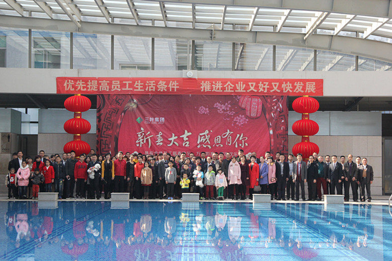 三葉集團(tuán)舉行2016年新春團(tuán)拜會(huì)作者: 來(lái)源: 時(shí)間:2016-2-8 23:55:07 2016年2月8日(正月初一)上午,三葉集團(tuán)2016年新春團(tuán)拜會(huì)在三葉之家游泳館舉行。來(lái)自集團(tuán)各部門(mén)、各子公司及合作公司的員工及其家屬歡聚一堂,喜迎新年、暢敘友情、共話未來(lái)。