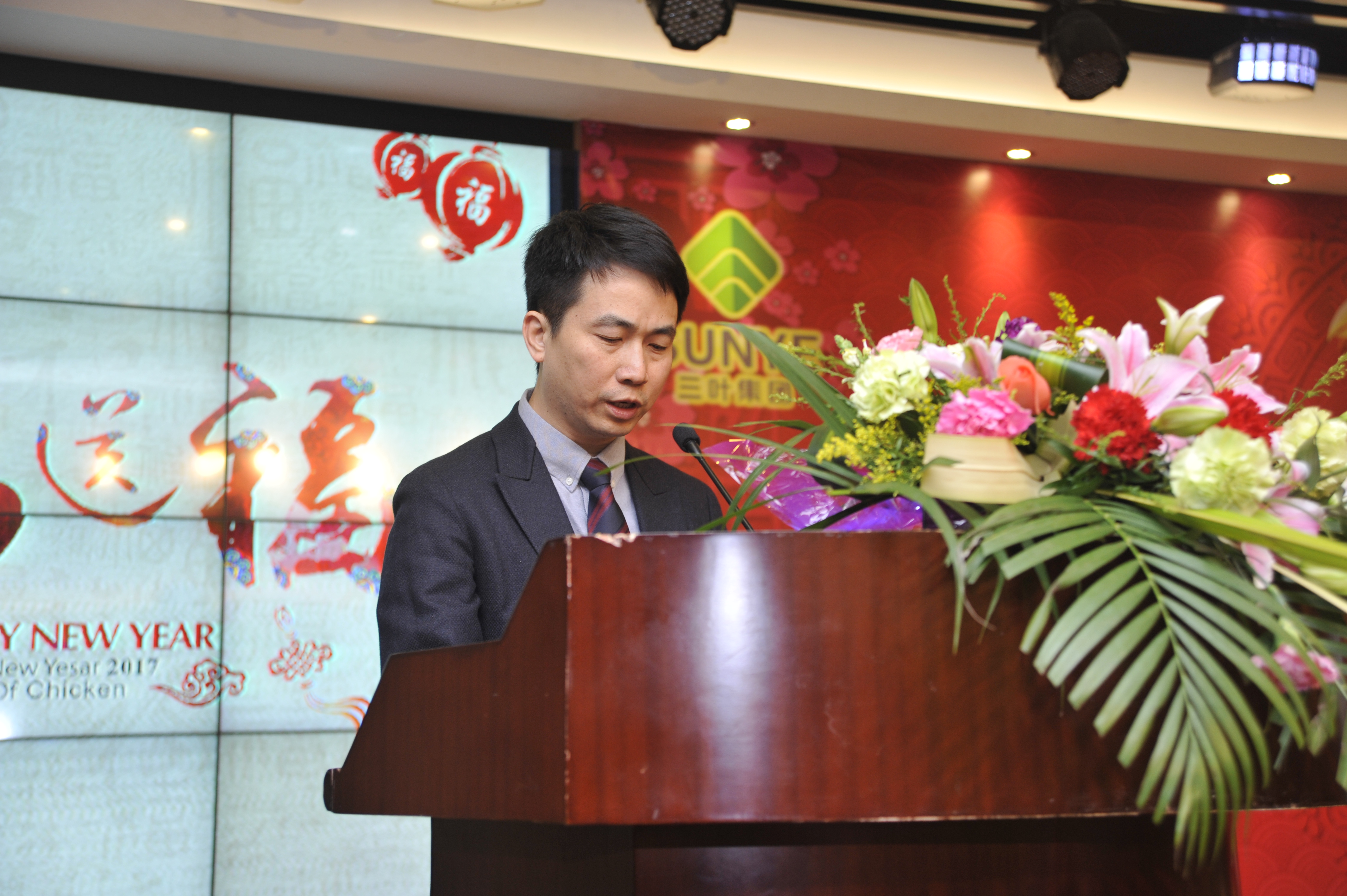 宴會開始時,三葉集團董事局主席、總裁葉維新先生致新春賀詞。賀詞中,葉主席細數集團過去一年獲得的重大成果,對過去一年集團各公司的運營情況充分肯定,同時也對新的一年提出更高要求,指出公司面臨全球多變的經濟形勢、日益增強的通脹壓力,三葉集團需一如既往地發揚“用心去做,永不滿足”的精神,不斷優化和完善制度,發揮多元化優勢,提升企業的綜合競爭實力。共克時艱,蓄勢騰飛。2017年是集團發展戰略中的尤為關鍵的一年。在經濟轉型的大背景下,機遇與挑戰并存,拼搏與輝煌同在!把握時局、運籌帷幄;苦練內功,決勝千里!我們所有三葉人將在2017年里為三葉的宏圖基業添福增彩,創造更大的成績和輝煌!