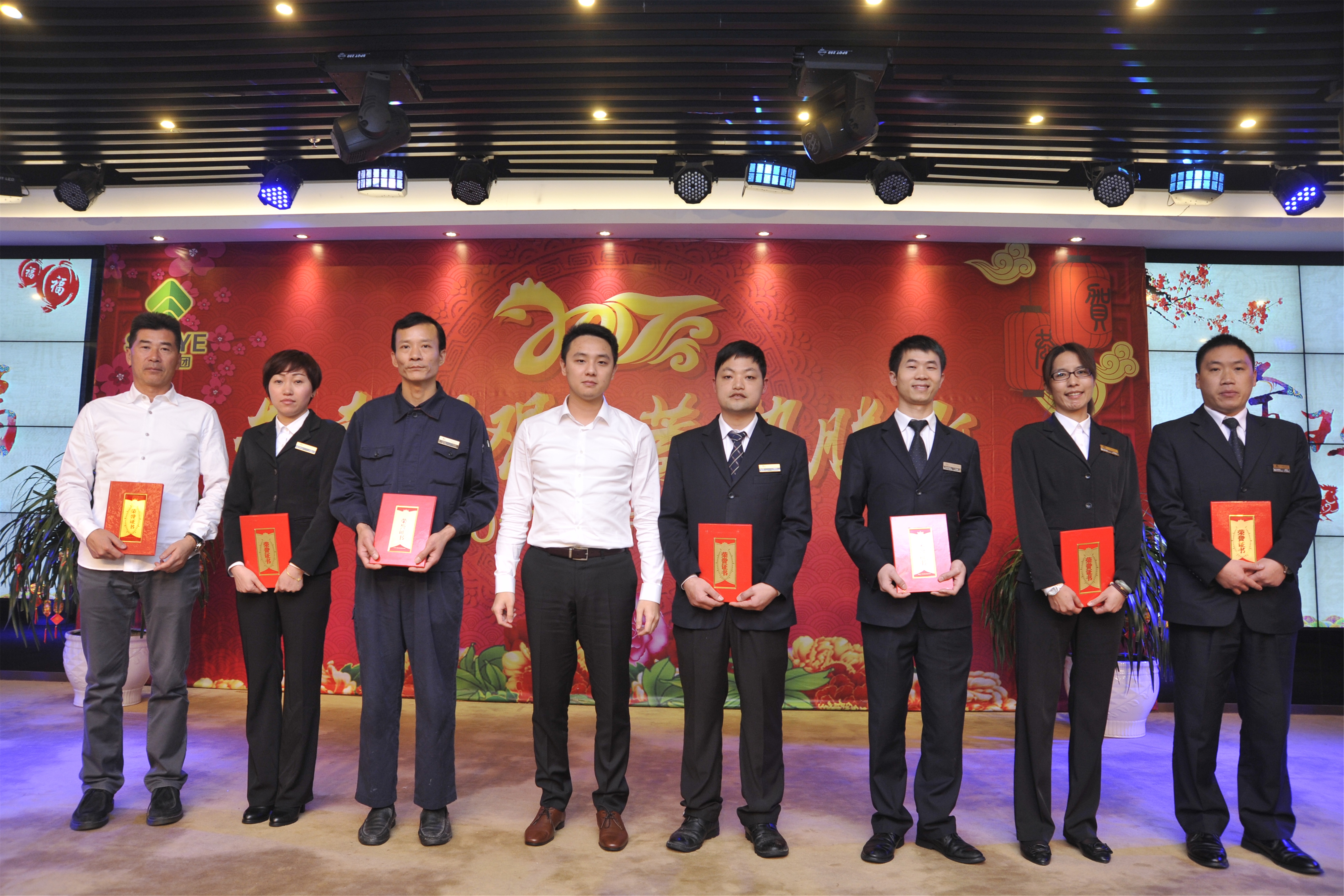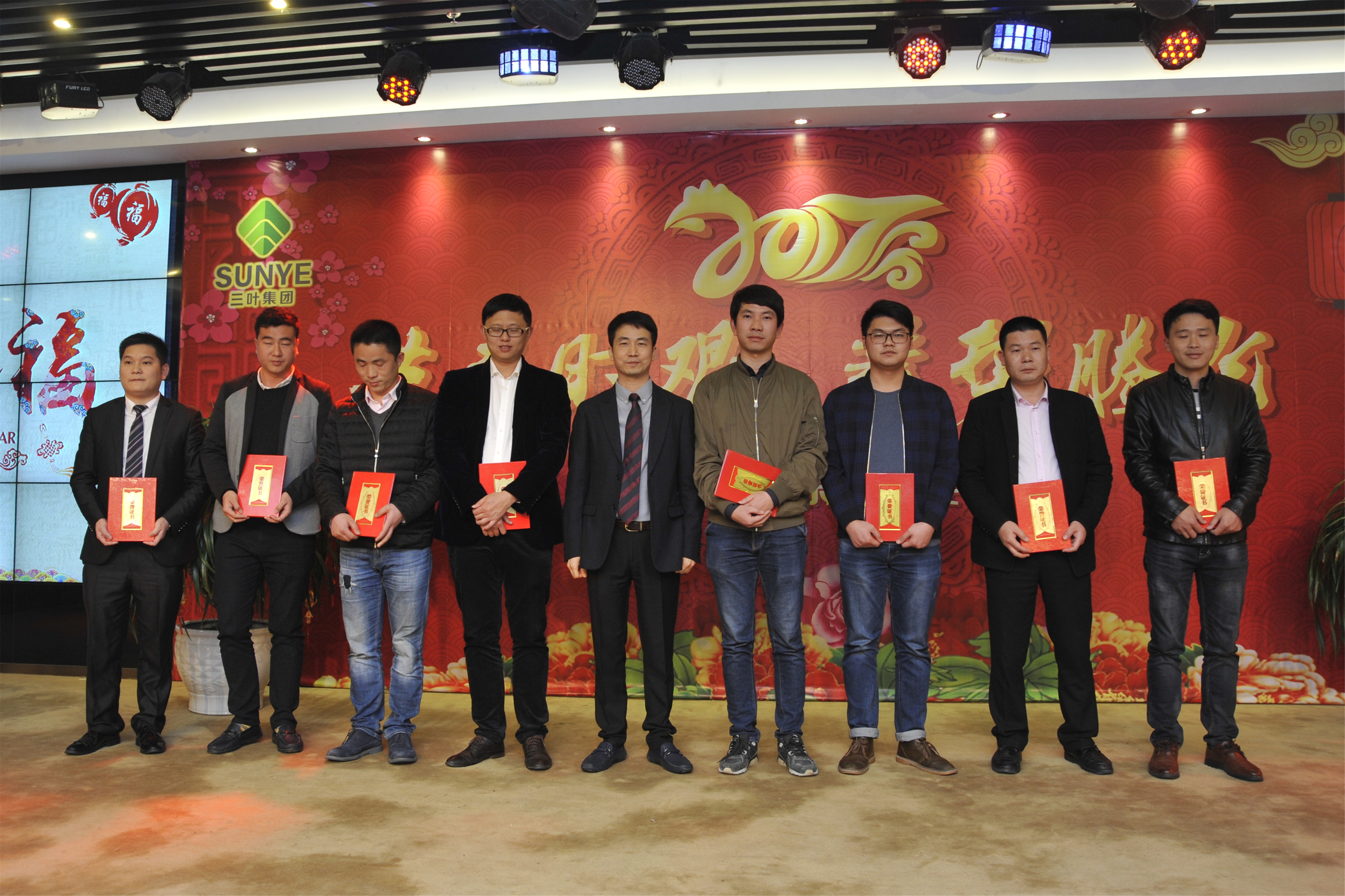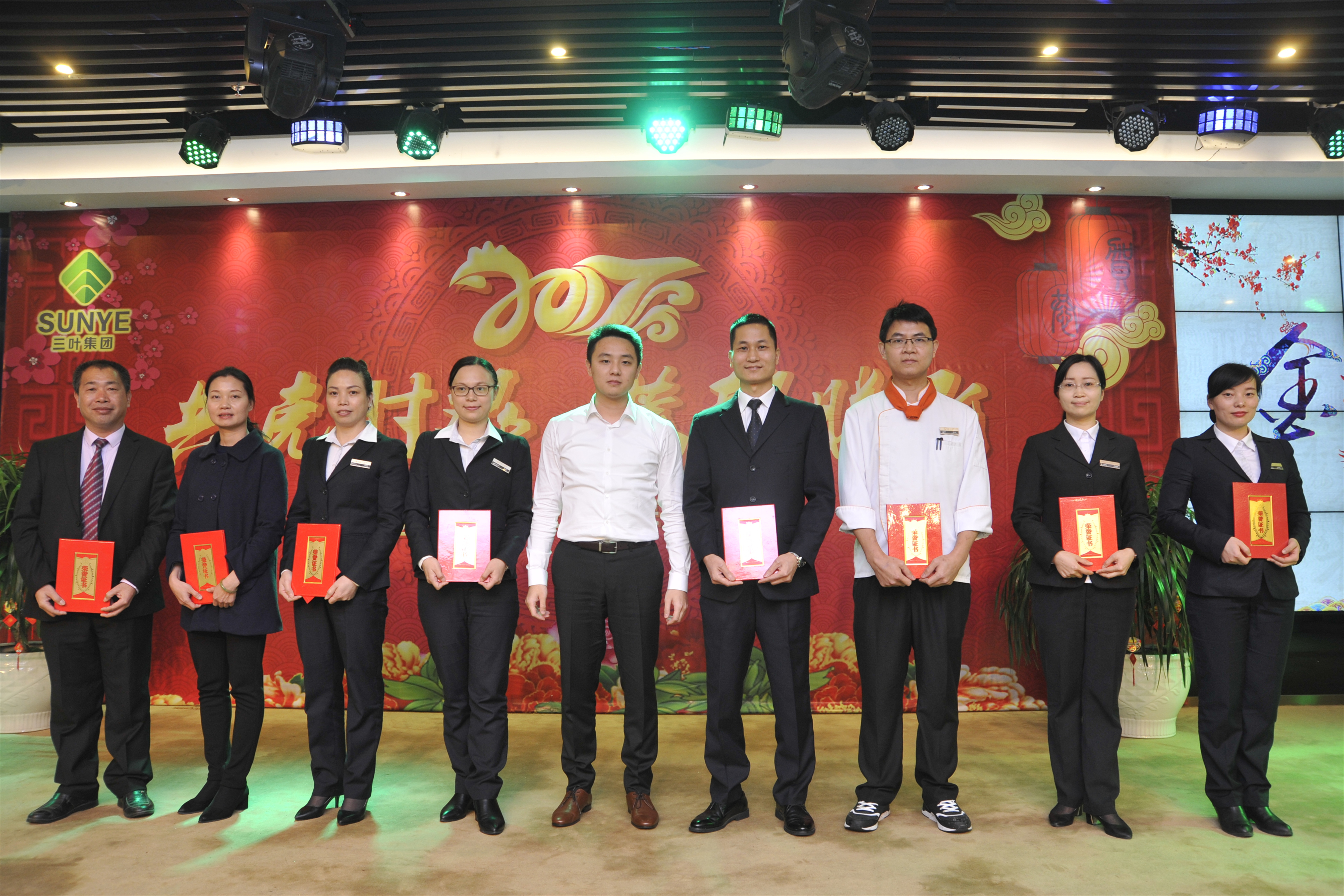 隨后,三葉集團董事葉貽吟先生宣讀了《關于表彰2016年度先進單位和優秀員工的決定》,要求各公司向先進學習、以先進為榜樣,加強學習、努力拼搏,為公司做出更大的貢獻。集團領導葉維新先生等分別為獲獎單位和優秀員工代表頒獎并合影留念。隨后三葉集團董事局主席、總裁葉維新先生與全場一起共同舉杯,盛聚三葉,祝愿美好的明天。