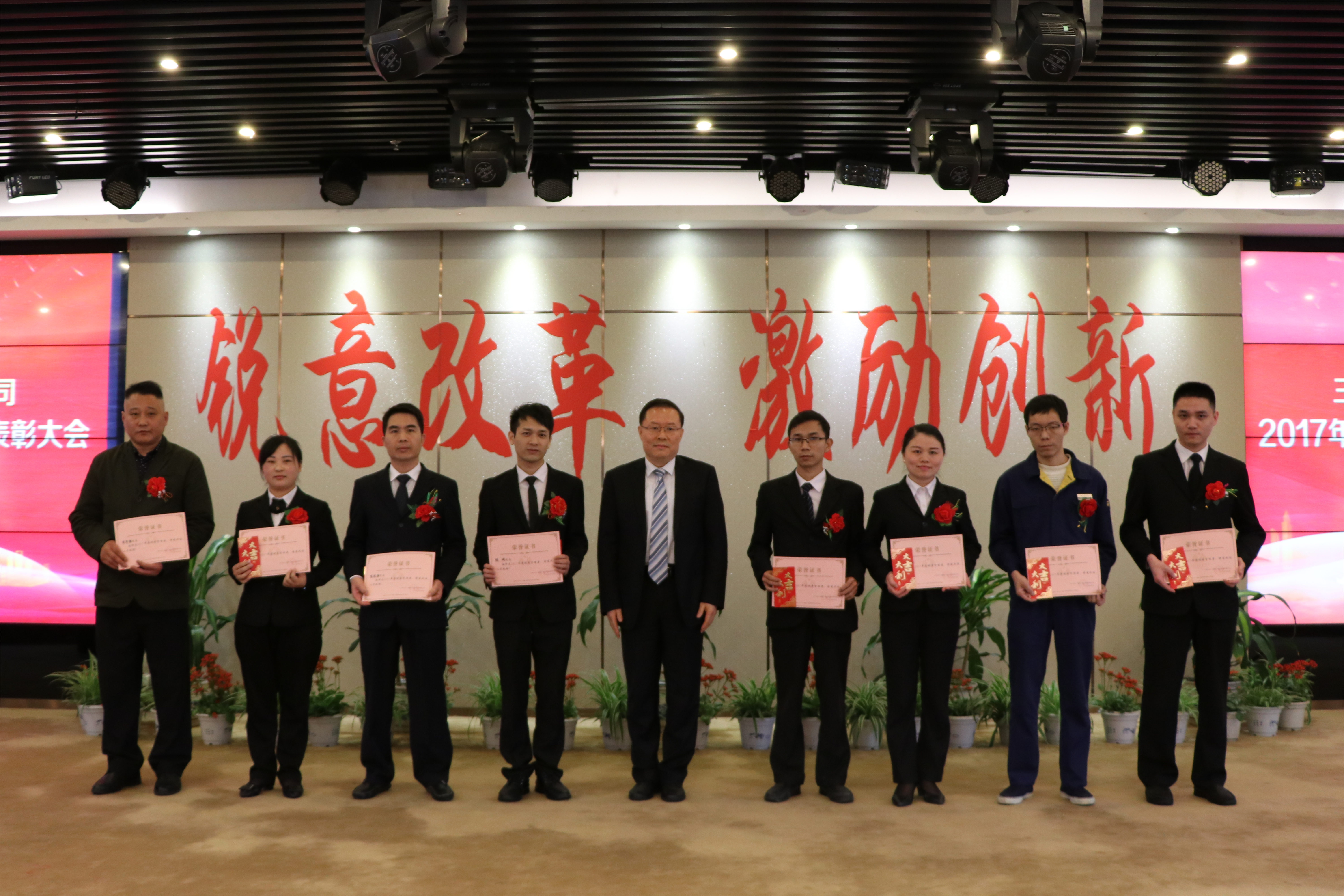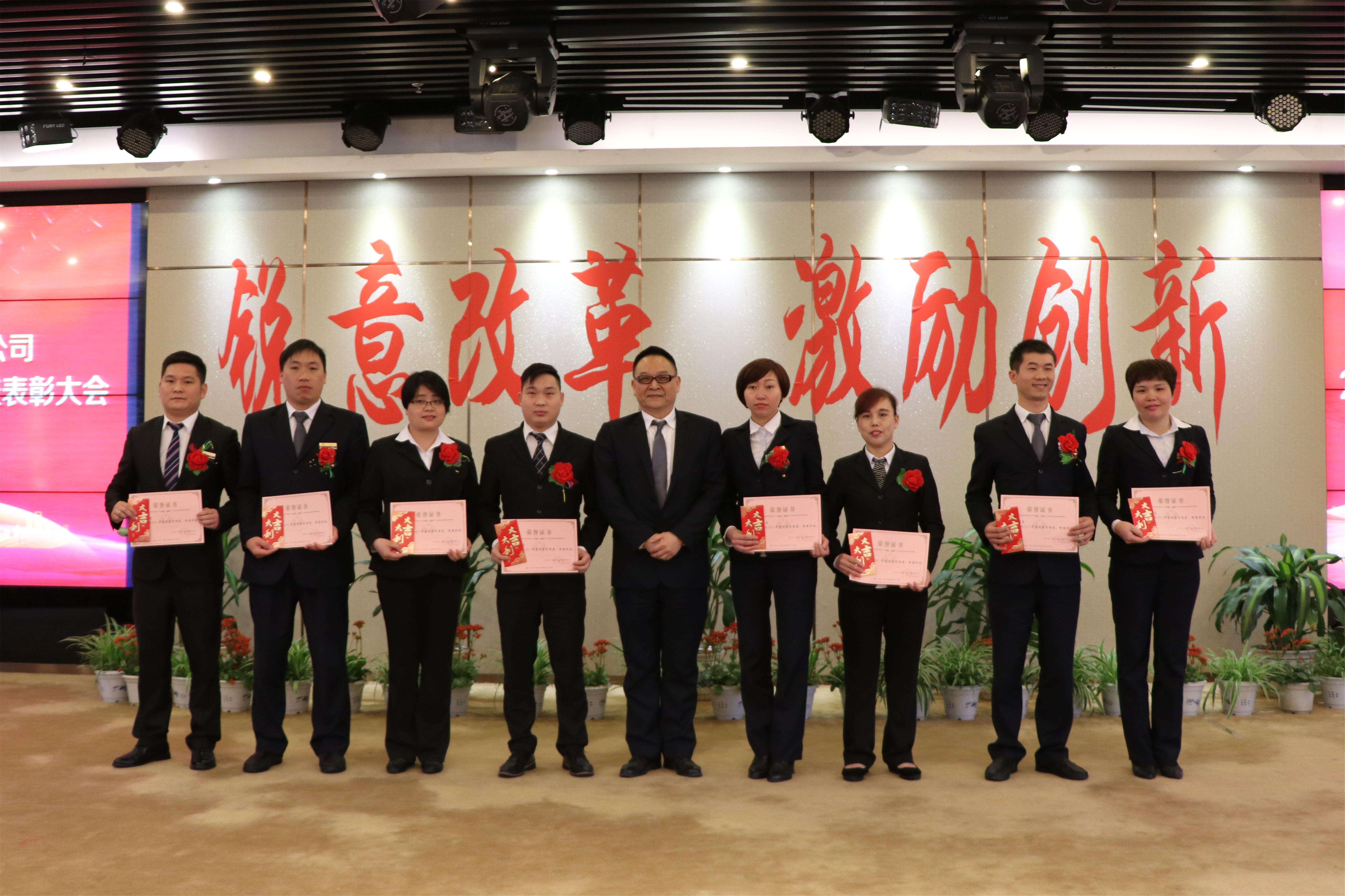在高亢的萬寶路進行曲中,48名優秀個人、16名優秀管理者、11名先進集體代表依次上臺,接受公司領導的頒獎及祝賀。陳心珍、王清泉二位同志分別代表優秀員工、優秀管理者作發言。現場氣氛熱烈、掌聲接連不斷。 頒獎儀式過后,三葉集團董事、酒管公司董事總經理黃清秀女士作了振奮人心的動員講話。講話中不斷肯定與鼓勵公司2017年所取得的喜人成績,也對2018年工作提出了新的要求與希望。