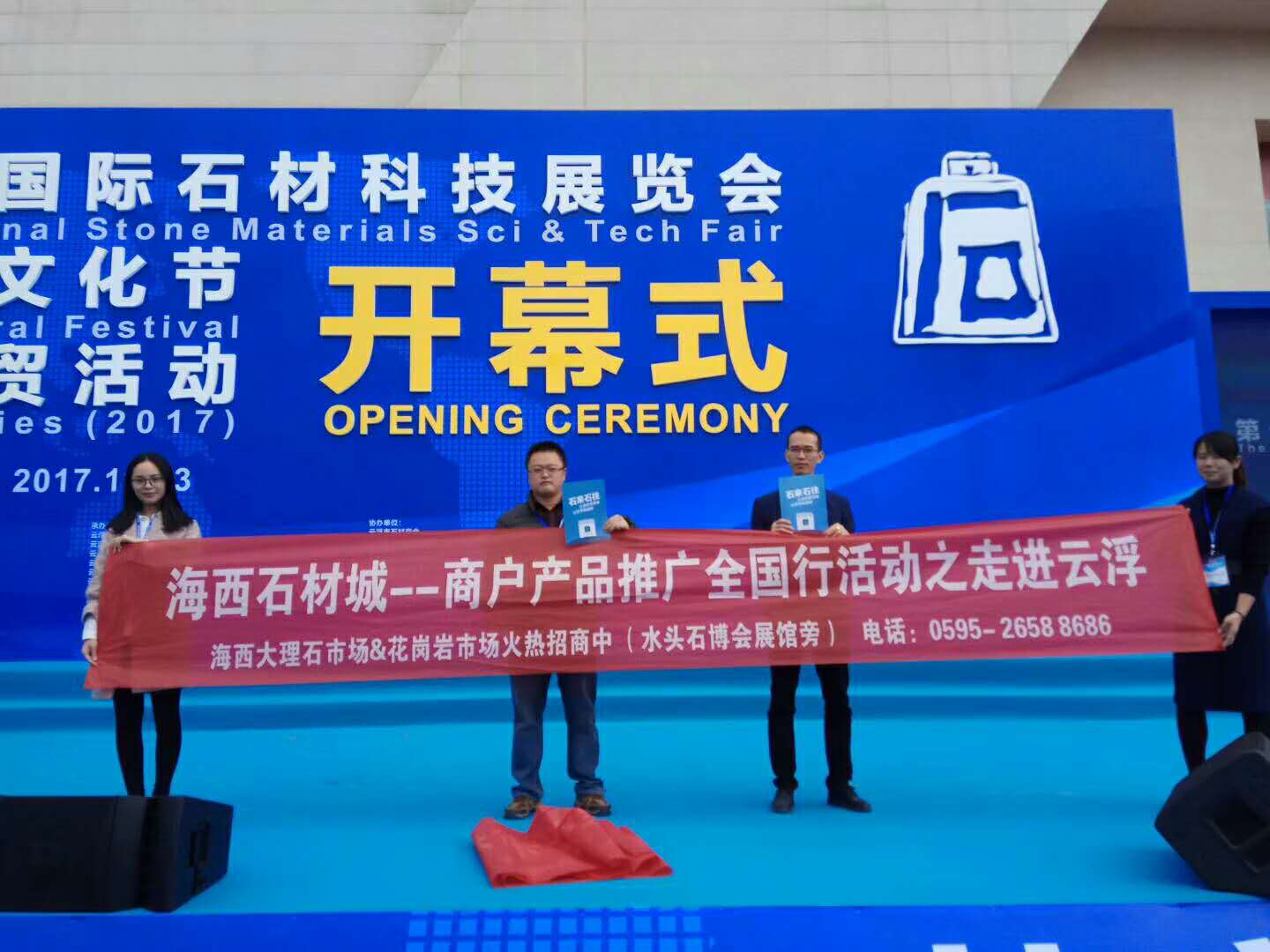 海西石材城商戶產(chǎn)品推廣全國行活動之走進云浮作者: 來源: 時間:2017-11-23 19:40:26 2017年11月23日上午,第十四屆云浮國際石材科技展覽會暨第八屆云浮石文化節(jié)在云浮國際石材博覽中心盛大舉行。